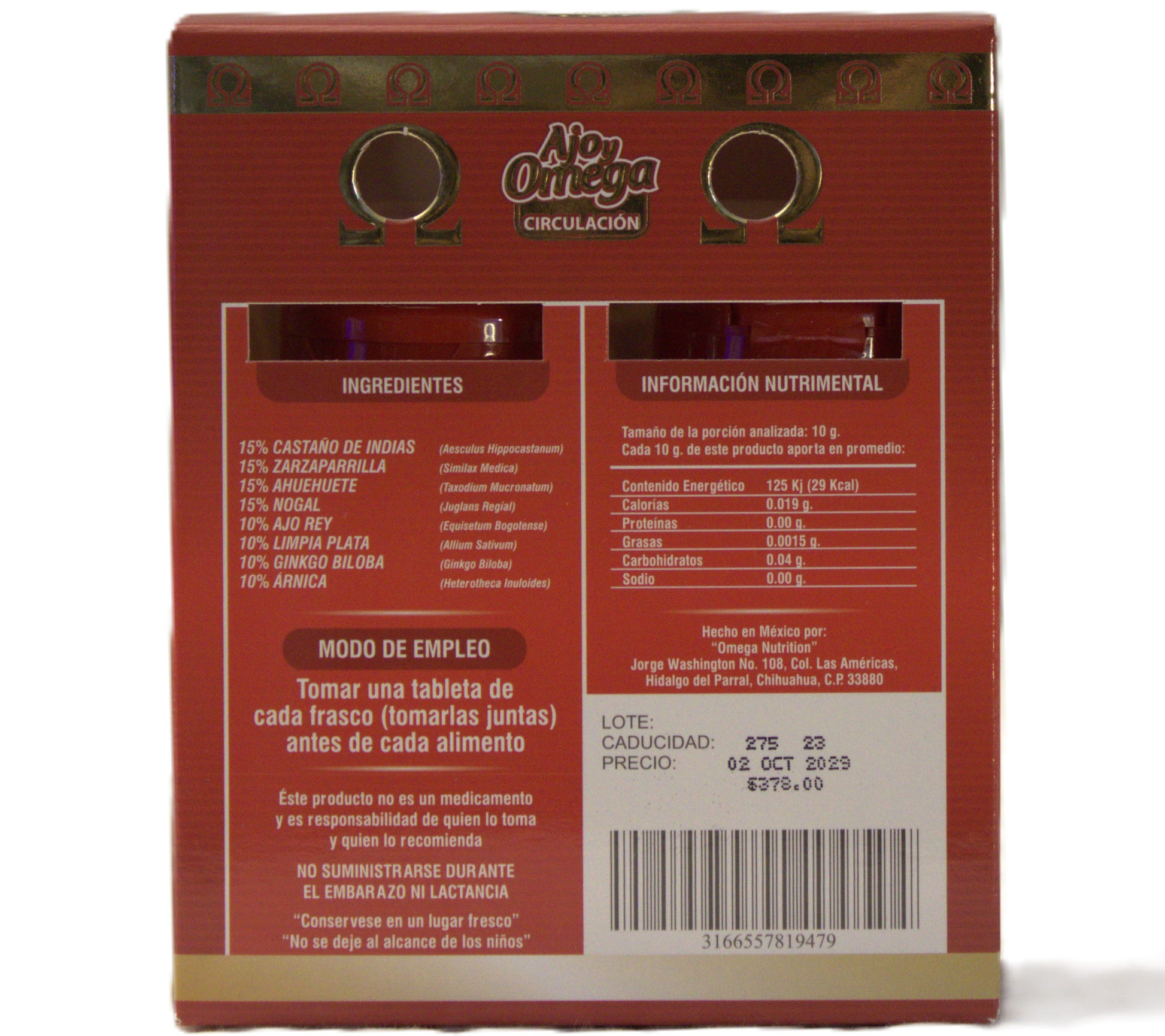 Ajo y Omega Circulación es una fórmula especializada diseñada para apoyar la salud cardiovascular y mejorar la circulación sanguínea. Combina los beneficios del ajo, reconocido por sus propiedades para mantener niveles saludables de tensión arterial, con ácidos grasos omega que favorecen la fluidez circulatoria. Esta combinación actúa sobre múltiples aspectos: ayuda a reducir la presión arterial, mejora la circulación en extremidades inferiores, alivia síntomas de varices y flebitis, reduce el adormecimiento de piernas y proporciona alivio en casos de hemorroides. Ideal para quienes buscan una solución natural y completa para problemas circulatorios. Suplemento de calidad formulado con ingredientes de probada efectividad.